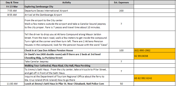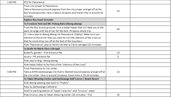 So before we get all excited for a trip that  didn’t happen yet but is yet to come (I’ll still be traveling tomorrow), I’ll just be posting the details here of our Zambo plan and itinerary. Hopefully this may come in handy for you in the future, especially if your planning to travel the cheaper way.